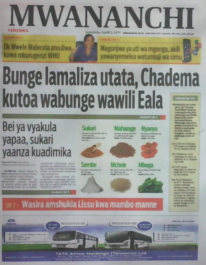 Habari Zilizopo Katika Magazeti Ya lEo Jumatatu April 3, 2017